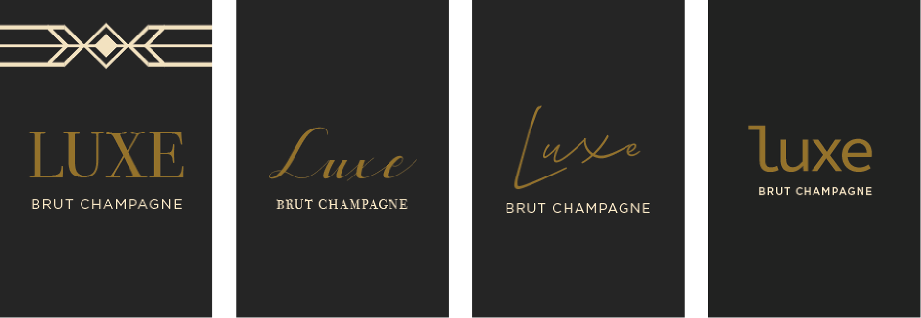 This bottle label design was for a champagne called Luxe that also came as a rosé. The idea for this brand was to be a higher end champagne used for special occasions rather than a cheap every day champagne.